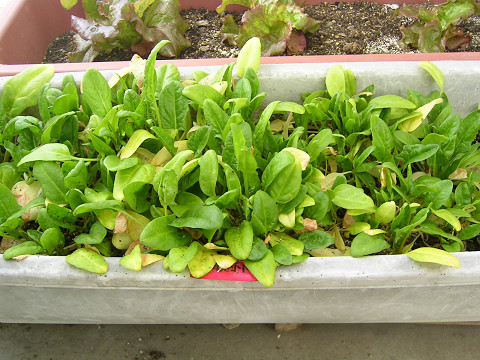 残念なホウレンソウえーっと、管理人の種のホウレンソウです。虫の楽園です。